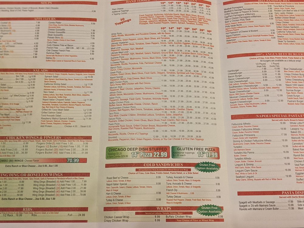 The Original Napoli Pizza is a beloved pizza joint in Henderson, NV that offers a wide range of options for all pizza aficionados. From classic Margarita and Meat Lovers pizzas to unique creations like BBQ Chicken and Greek Pizza, there's something for everyone. Their lunch specials, like the Triple Decker BLT and Stromboli, are a great deal for a quick and satisfying meal. The restaurant also offers gluten-free options and vegetarian choices, making it a versatile spot for all dietary preferences. With convenient amenities such as delivery, takeout, and outdoor seating, The Original Napoli Pizza is a must-visit for pizza lovers in the area. The cozy atmosphere and friendly staff add to the overall dining experience, making it a favorite spot for families, groups, and even solo diners.